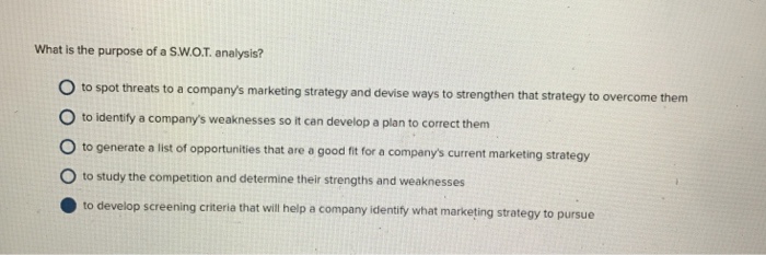 Solved What Is The Purpose Of A S W O T Analysis O To Sp
